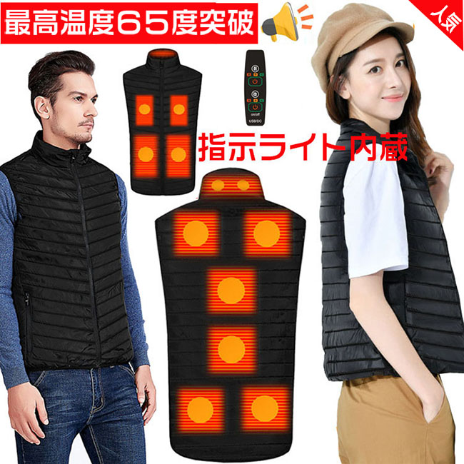 電熱ベスト ヒーターベスト 加熱ベスト ヒーター 点灯スイッチ内蔵 最高温度65度突破 新品改良 三階段温度調節 節電