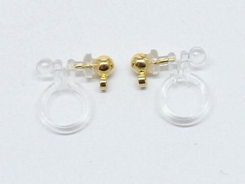 サイズ・・・約3mm玉 11mmカラー・・・ゴールド金属アレルギーの方にお勧めの挟むタイプの樹脂製ノンホールピアスです!