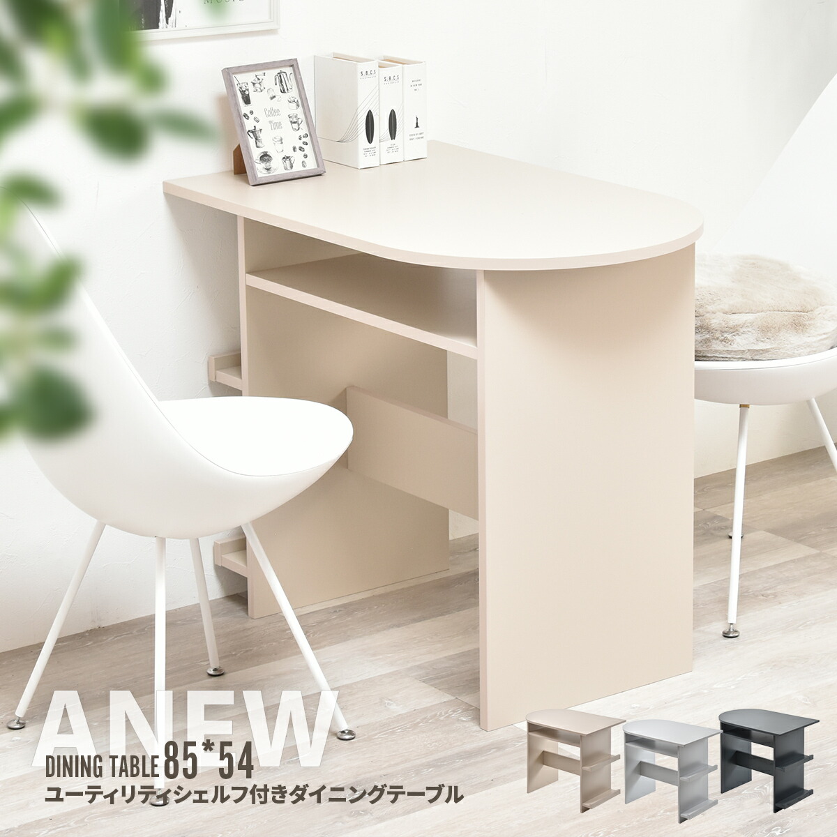 片側が丸みを帯びた天板と個性的な脚部が目を引く、ハーフラウンドデザインのダイニングテーブル。背面にはOAタップや小物を置けるユーティリティシェルフを備え、見た目の美しさと機能性を両立しました。幅85cmのコンパクトサイズで、ダイニングにもワークスペースにもぴったり。落ち着きのある3色展開で、お部屋のテイストに合わせたコーディネートが楽しめます。 |
