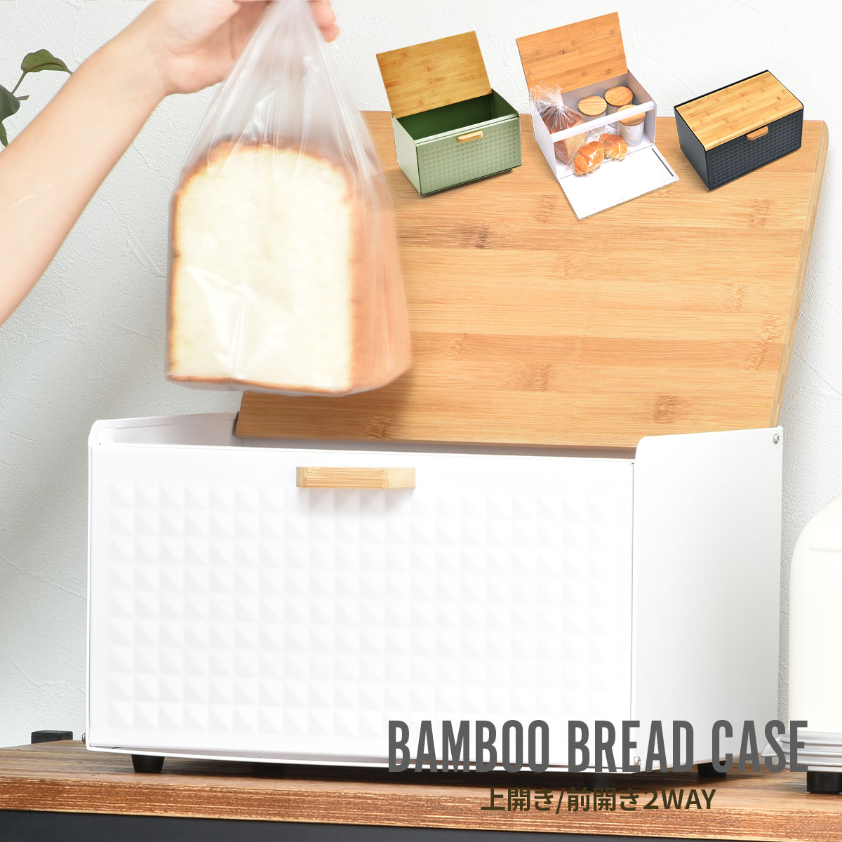 パウダー塗装のスチールとバンブーの組み合わせが美しく、パンやシリアル、紅茶などをすっきりとまとめて収納できるシンプルで大容量のブレッドケース。