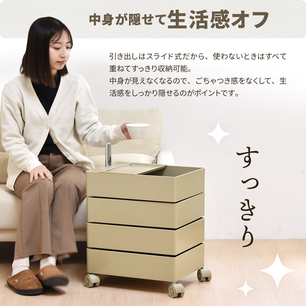 引き出しはスライド式だから、使わないときはすべて重ねてすっきり収納可能。