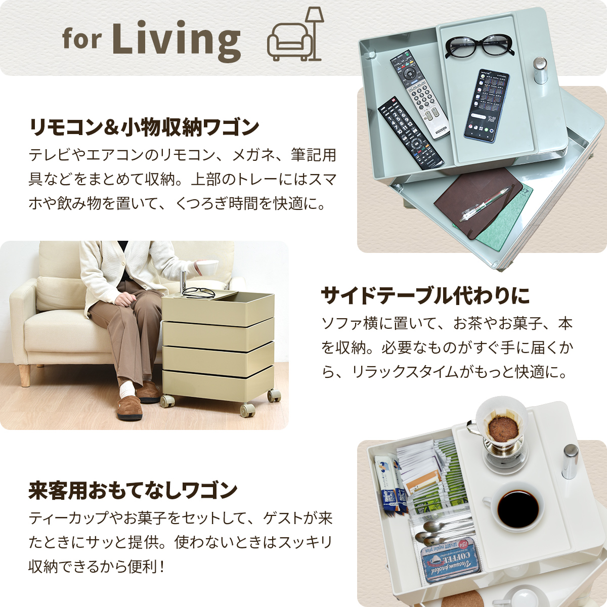 どんな空間でも、使い方が広がる万能収納ワゴンです。