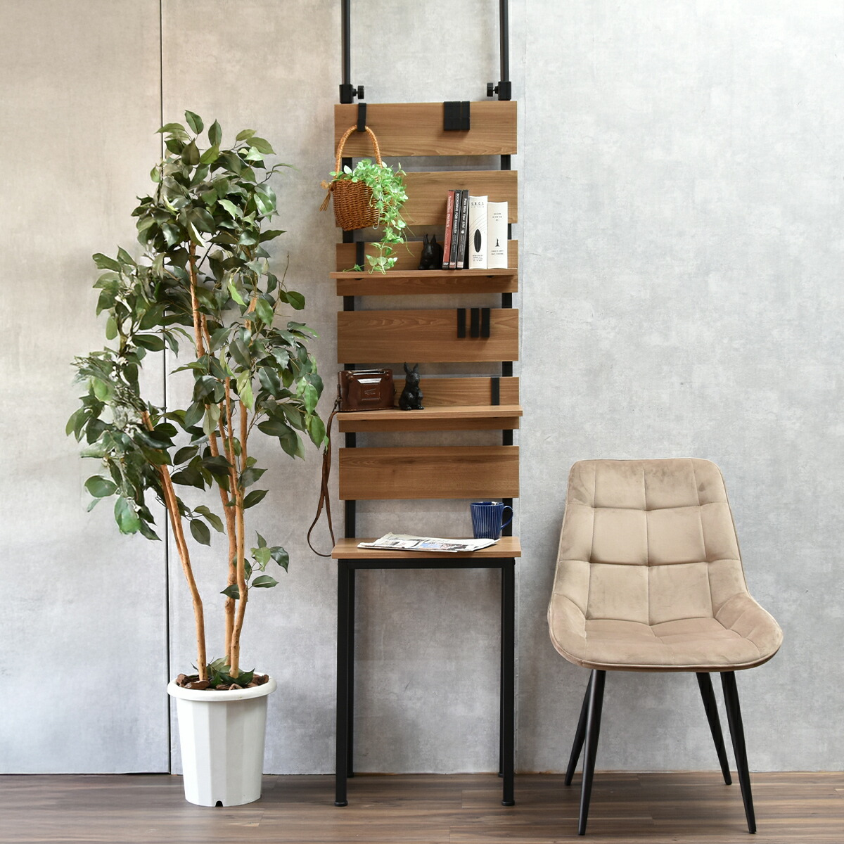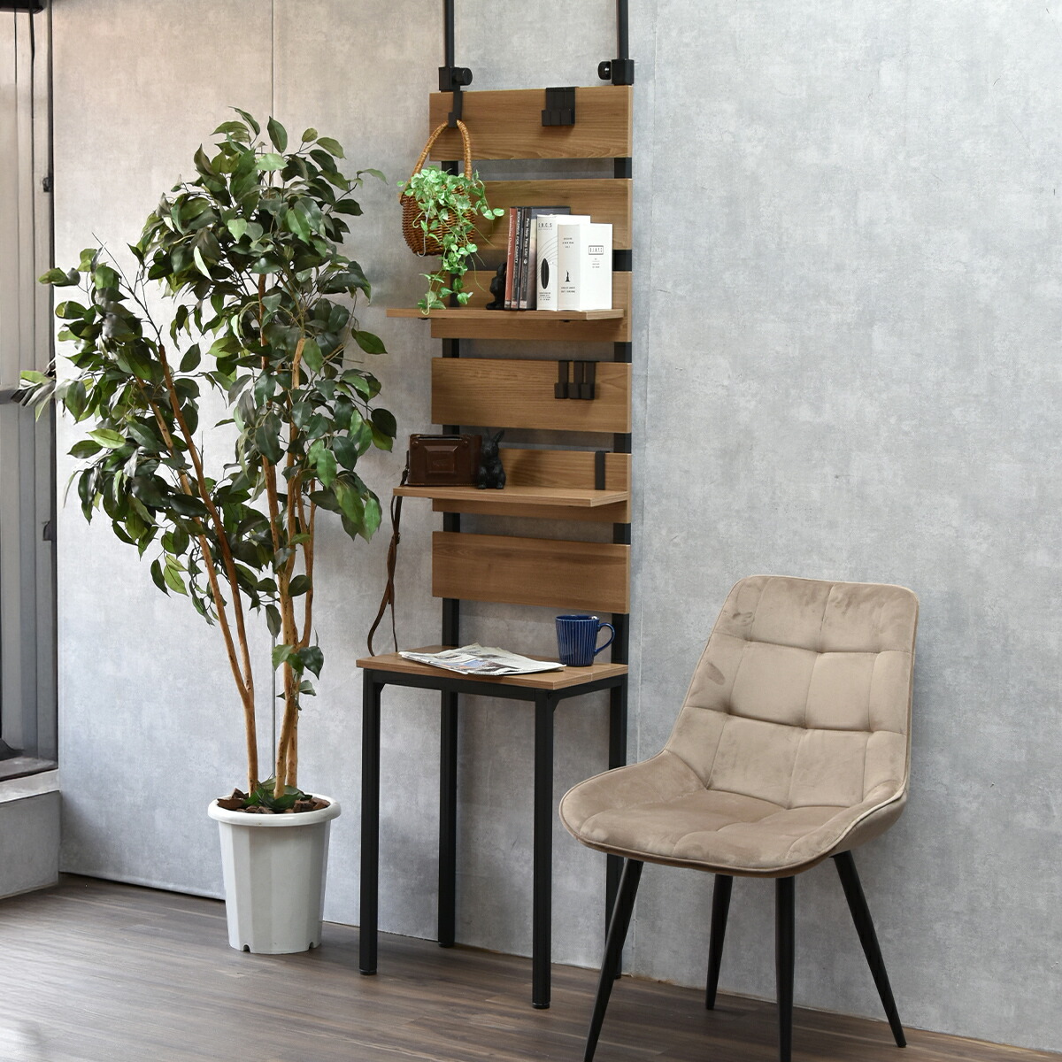 本物のような手触りと、雰囲気のある木目とスチールフレームの組み合わせが様々なテイストに合います。