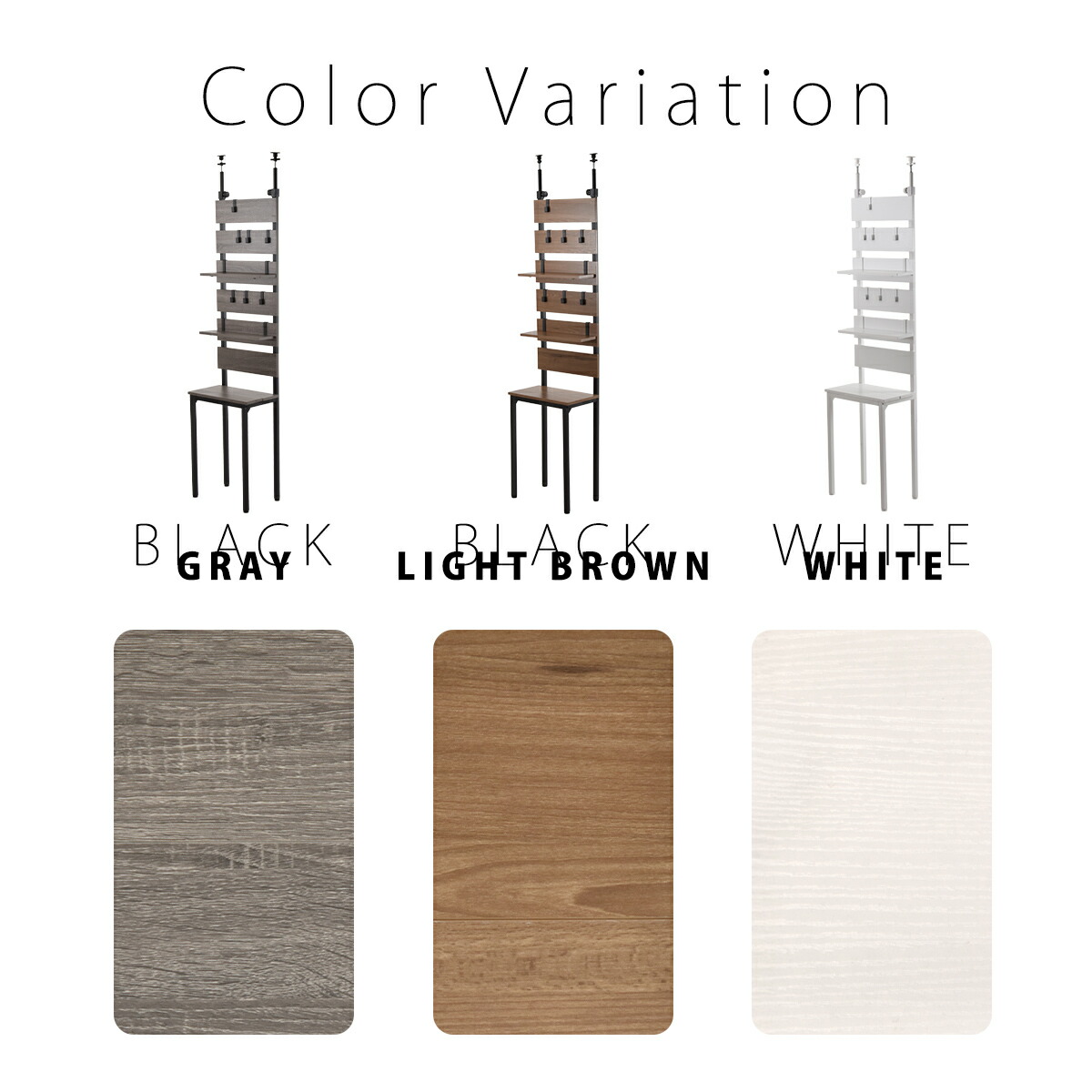 木目調のデザインはグレー、ホワイト、ダークブラウンの雰囲気が異なる3色展開。
