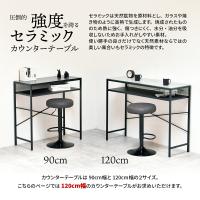 天板ガラスの表面にセラミック焼き付け加工を施したカウンターテーブルです。表面にセラミック焼き付け加工を施しているので、耐火耐熱・表面硬度・防水など機能性は抜群です。天板表面のセラミックが高級感のあるデザインなので、見た目も機能性も備わったおすすめの商品です。天板はセラミック焼き付け加工が施されているので熱に強く、熱いお鍋などを直接置いても変色、変形なく、またキズにも強いので天板をまな板代わりに使ってもキズがつきません。お手入れも簡単で食材や油などの汚れが染み込むことがなく、さっと拭いてお手入れができます。セラミックならではの揺らぎのある陶器の色味、触った時の質感など様々な風合いを楽しむことができる魅力的な商品です。天板下にペールボックスを収納したり、デスクやカウンターとして使ったり多彩なシーンで活躍します。同シリーズのキッチンワゴンと一緒に使うと、ワゴンが天板の下にスッキリ収納できます。 |