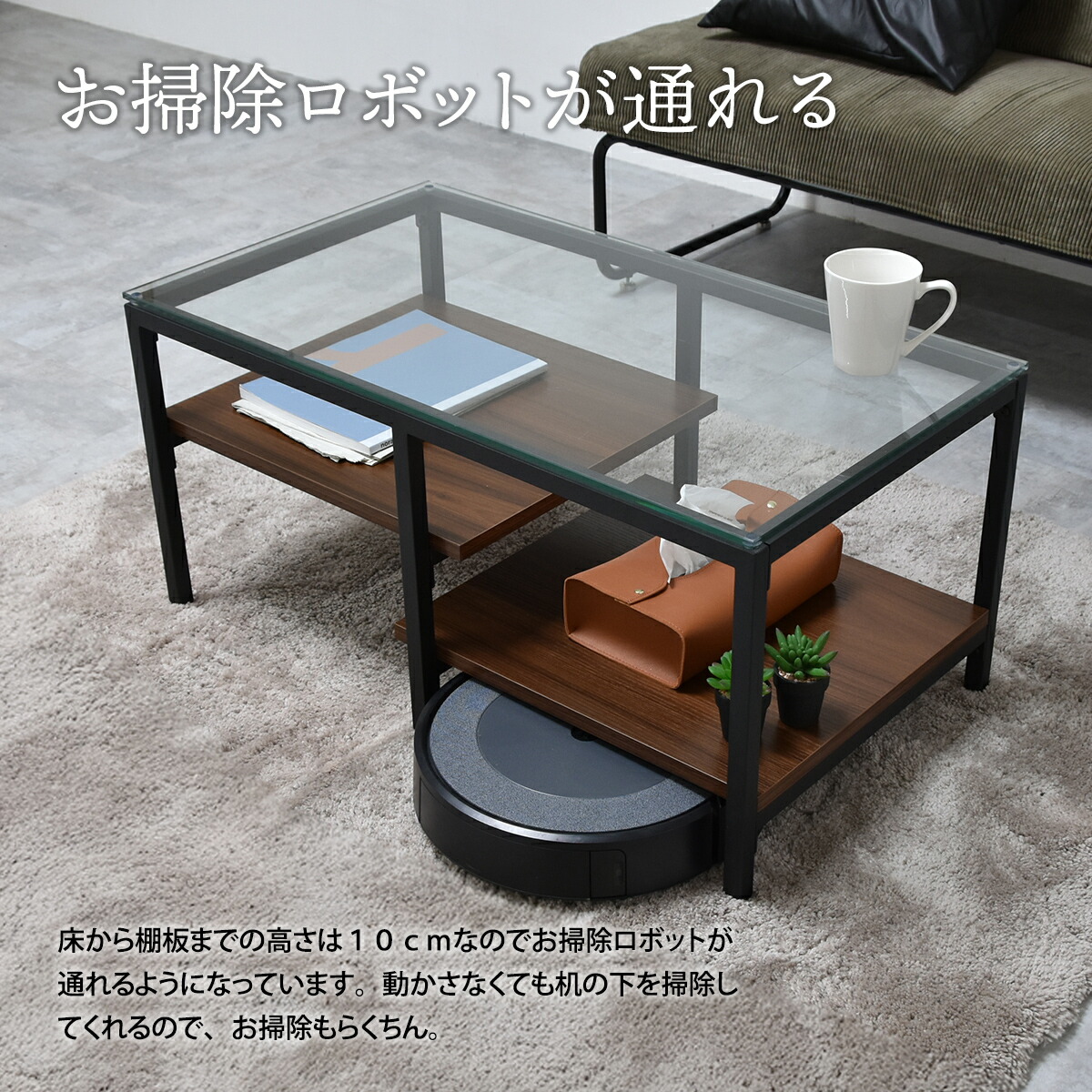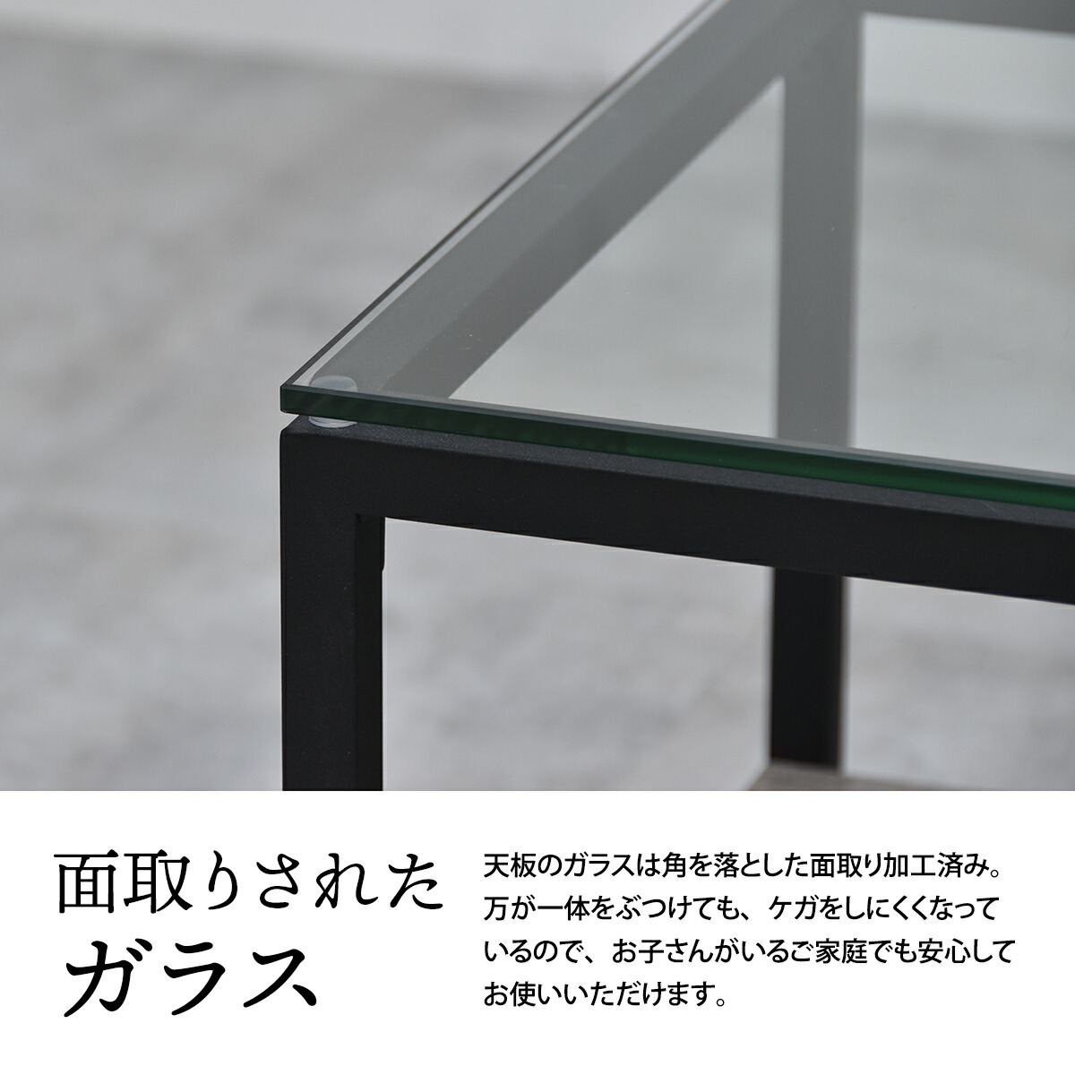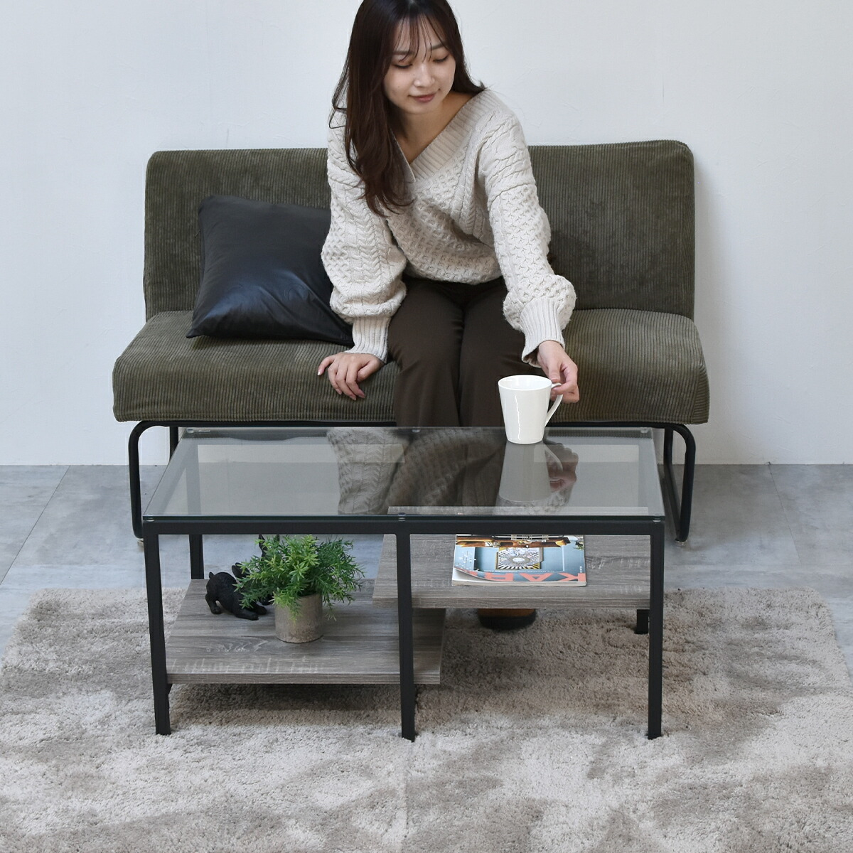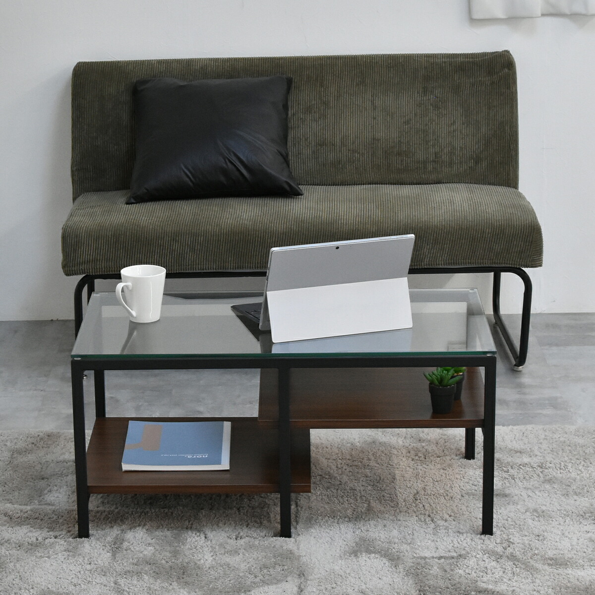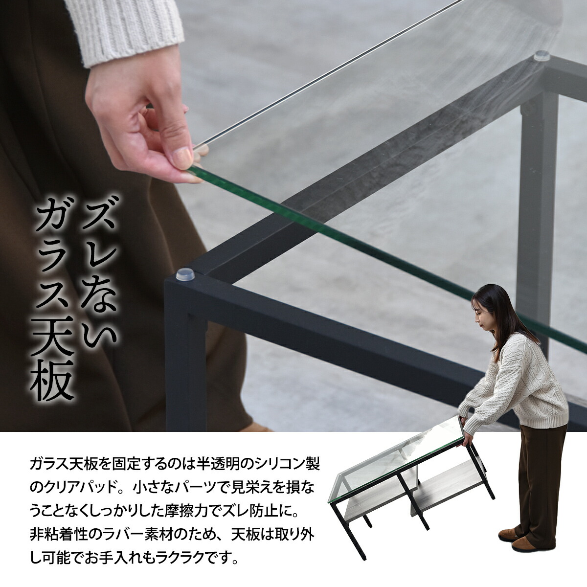 強化ガラス製の天板と左右で高さの違う棚板を備えたアシンメトリーなデザインのセンターテーブルです。収納部にはリモコンや雑誌など日常で使用するものを収納することはもちろん、棚の高さに変化を持たせていることでお気に入りのアイテムをスタイリッシュにディスプレイすることが可能です。透明なガラス天板は圧迫感を軽減ながら、抜け感のある美しい空間作りを演出します。 |