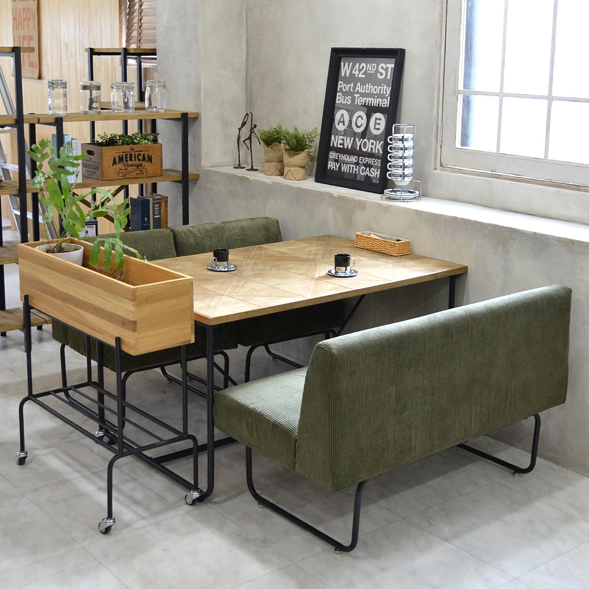 ダイニングセット/4人掛け/4点セット/ビンテージ/ヴィンテージ/ミッドセンチュリー/北欧/インダストリアル/カフェ/天然木/ダイニング4点セット/ソファ/stale