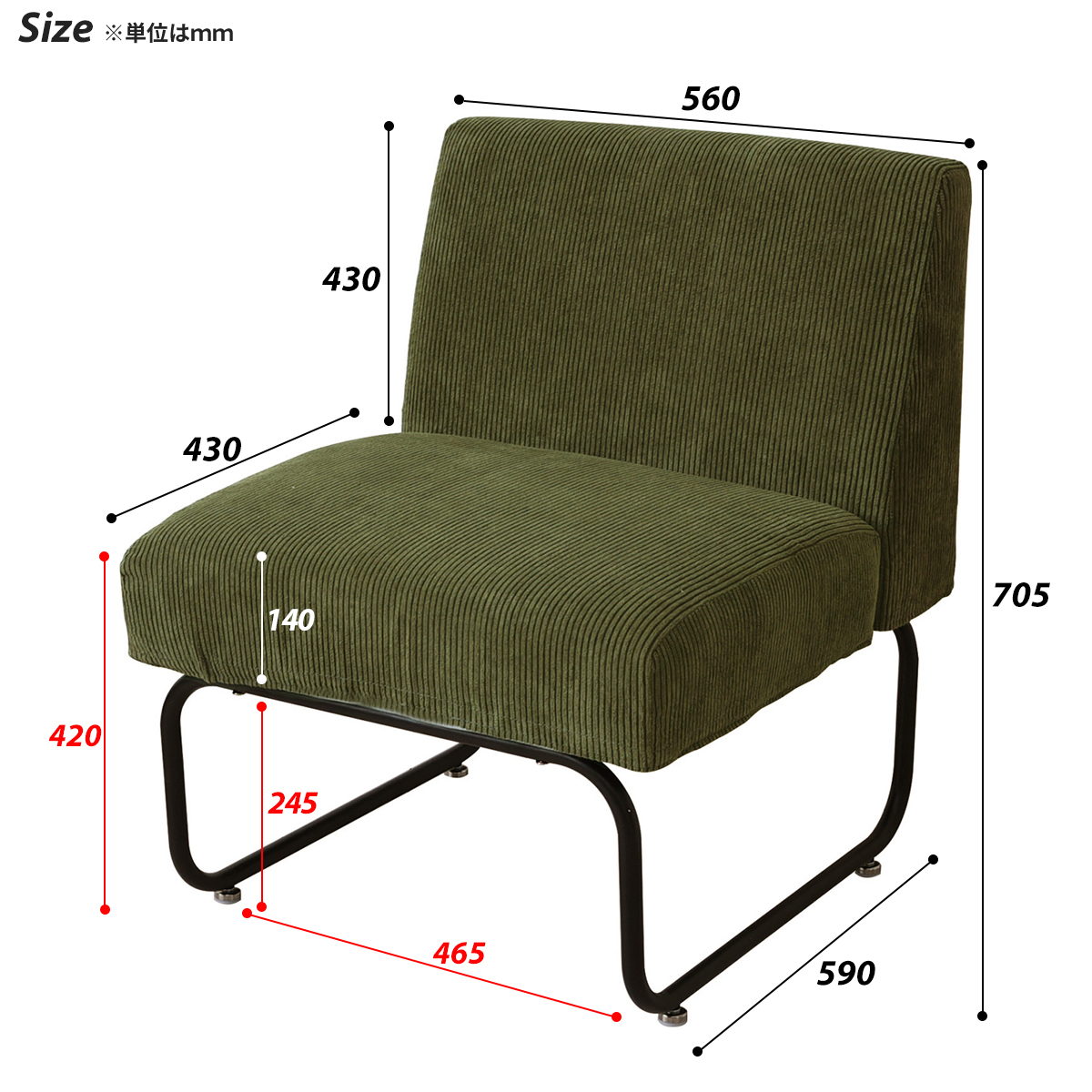 1Pソファ:幅560×奥行き590×高さ705mm 座面の高さ:420mm