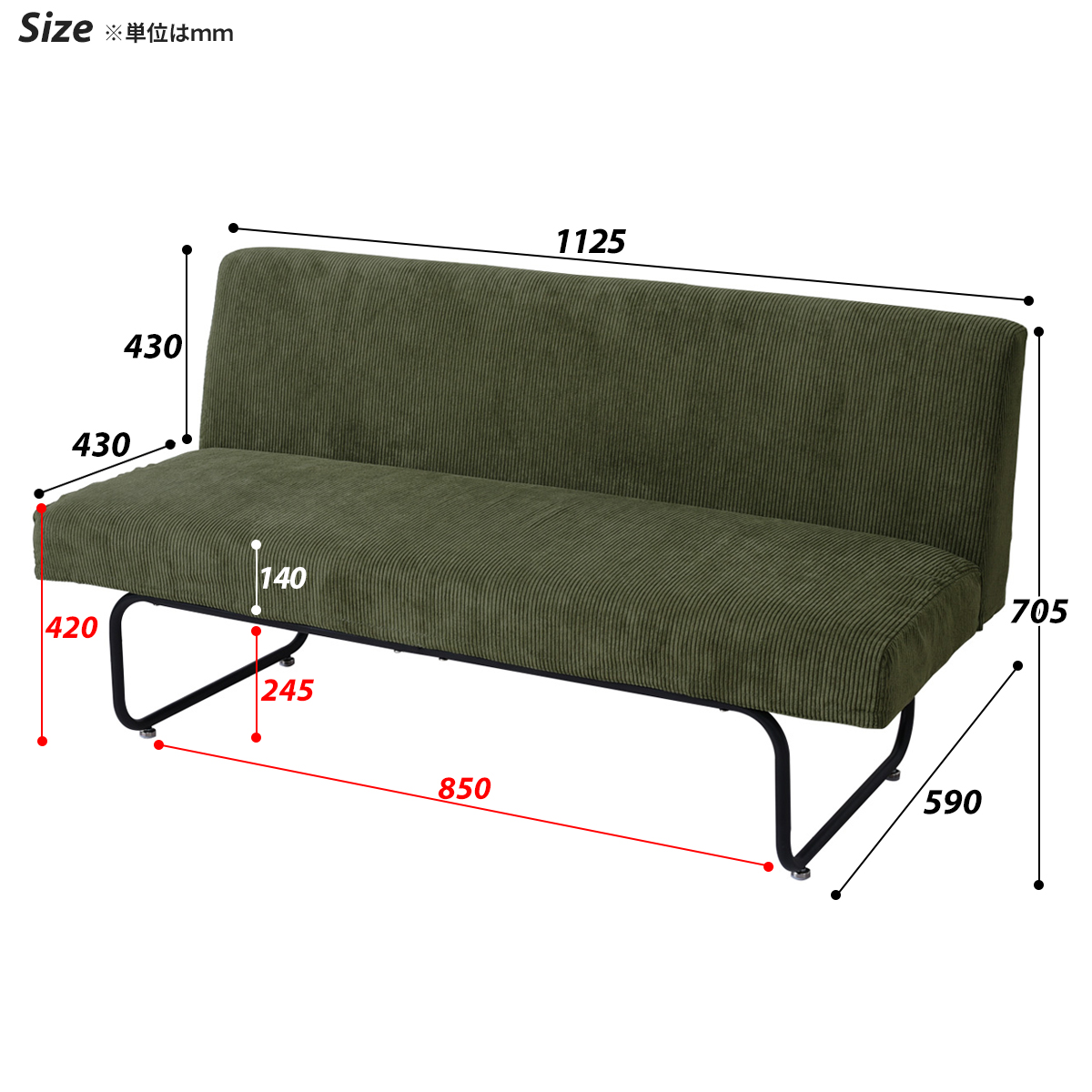 2Pソファ:幅1125×奥行き590×高さ705mm 座面の高さ:420mm