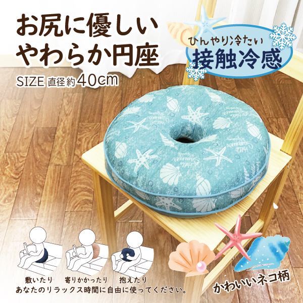 クッション 円座 円座クッション 冷感 ドーナツ 介護用品 床ずれ防止 介護 ケア用品 ひんやり COOL 直径約40cm シェル マリン 夏 海 大量 業務用