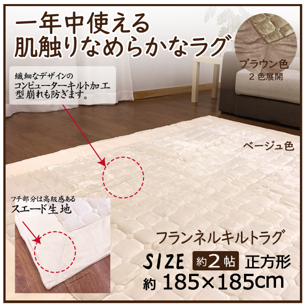 ラグ 2畳 正方形 こたつ敷 こたつ敷布団 リビングマット おしゃれ ホットカーペット対応 フランネル キルト 訳あり 185×185 セール