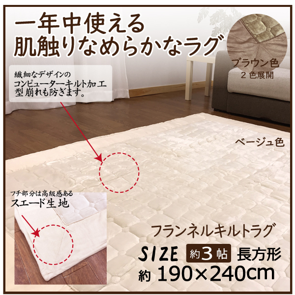 ラグ カーペット こたつ敷 こたつ敷布団 おしゃれ ホットカーペット対応 フランネル キルト 190×240 長方形 3帖 3畳 訳あり セール