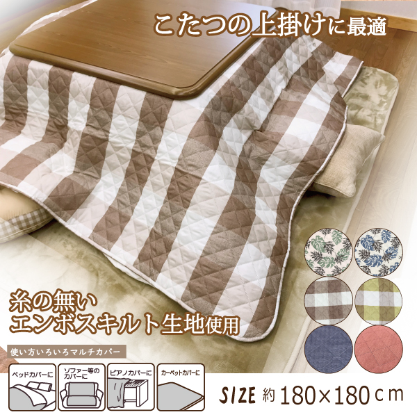 マルチカバー ソファー こたつ カバー 正方形 180×180 おしゃれ クロス こたつ上掛 ベッド ピアノ キルト キルトマルチカバー チェック モンステラ ボーダー 幾何学模様 ボタニカル オールシーズン カーペットカバー