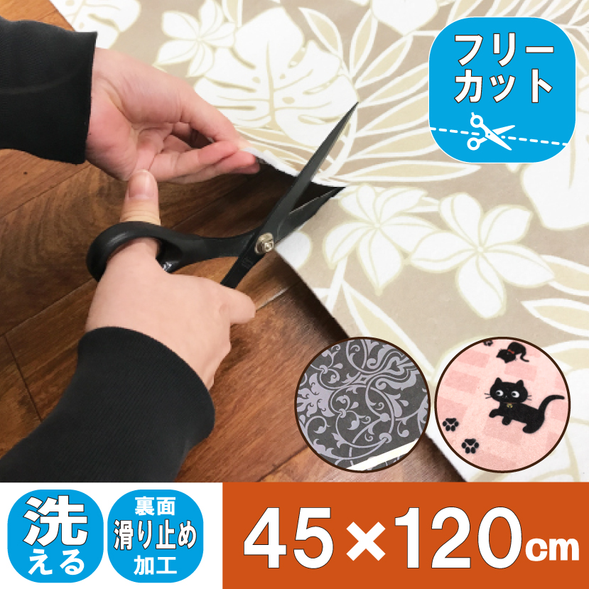 ラグ マット キッチン 玄関 フリーカット はさみ 切れる 自由に切れる 45×120 ペットマット 洗える 滑り止め M1068