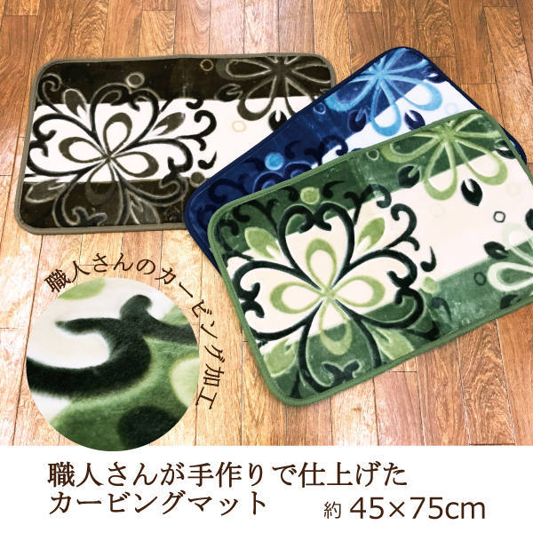 玄関マット マット カービング ボア ふかふか 滑り止め付 45×75 M3250