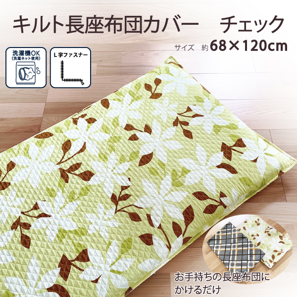 カバー 座布団 長座布団 カバー 座布団カバー クッション クッションカバー 取付 簡単 68×120 キルト長座布団カバー リーフ