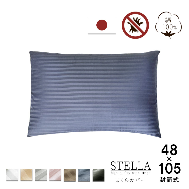 枕カバー 封筒式 48×105cm 防ダニ 綿100% 日本製 サテン ストライプ ピローケース 枕用 高級ホテル仕様 ネコポス便 シルク のような 艶 綿 100% 父の日