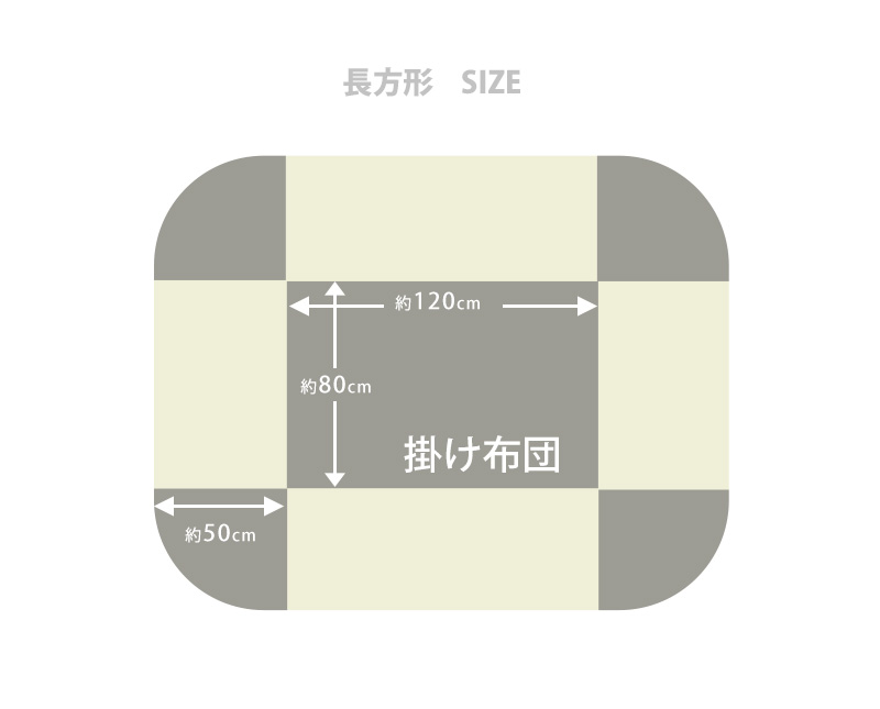 (約)115〜120×75〜80×高さ50cmこたつ本体サイズに適しています。