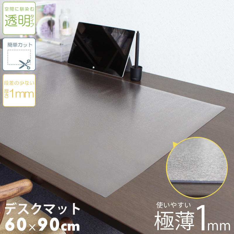 SALE 1580円→1280円 デスクマット 60×90cm 透明 学習机 クリア 角丸 机 拭ける 簡単 透明 勉強机 汚れ防止 キズ防止 No.16 マット 大判 シンプル ポイント利用