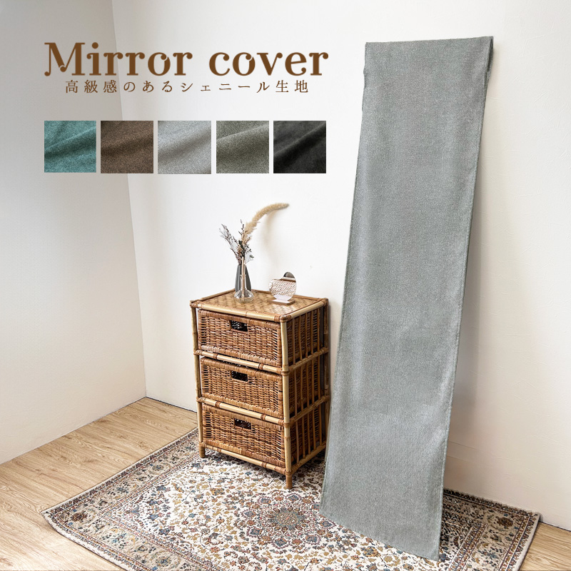 ミラーカバー おしゃれ 専用カバー ミラー用カバー シェニール 予備 北欧 北欧風 無地 織り 和風 洋風 激安 人気 厚手 鏡用カバー ゴム付き 全身 風水