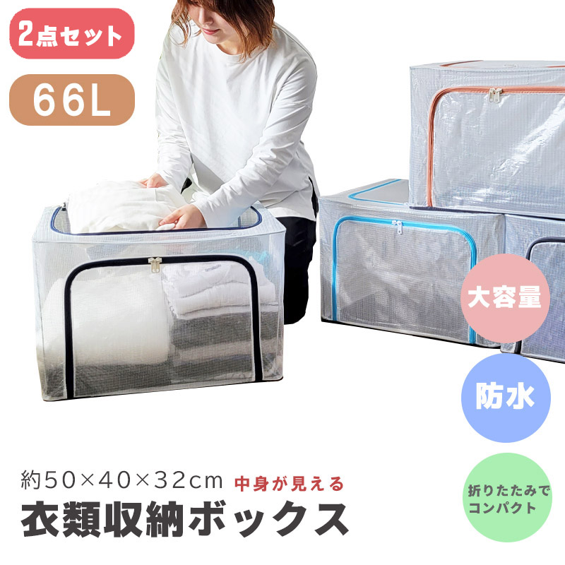 収納ケース 衣類収納ボックス 2点セット 大容量 66L 軽量 折りたたみ コンパクト 不織布 よりも丈夫 ケース 収納ボックス 衣替え 洋服 たくさん入る