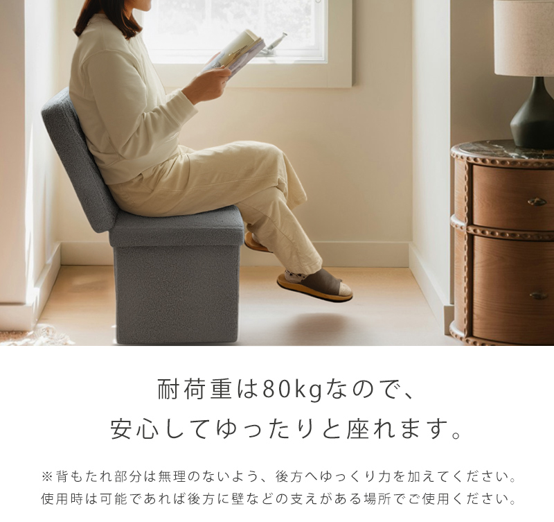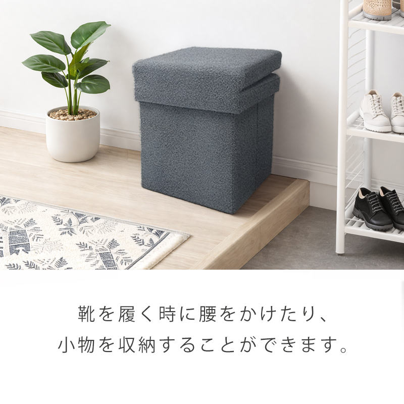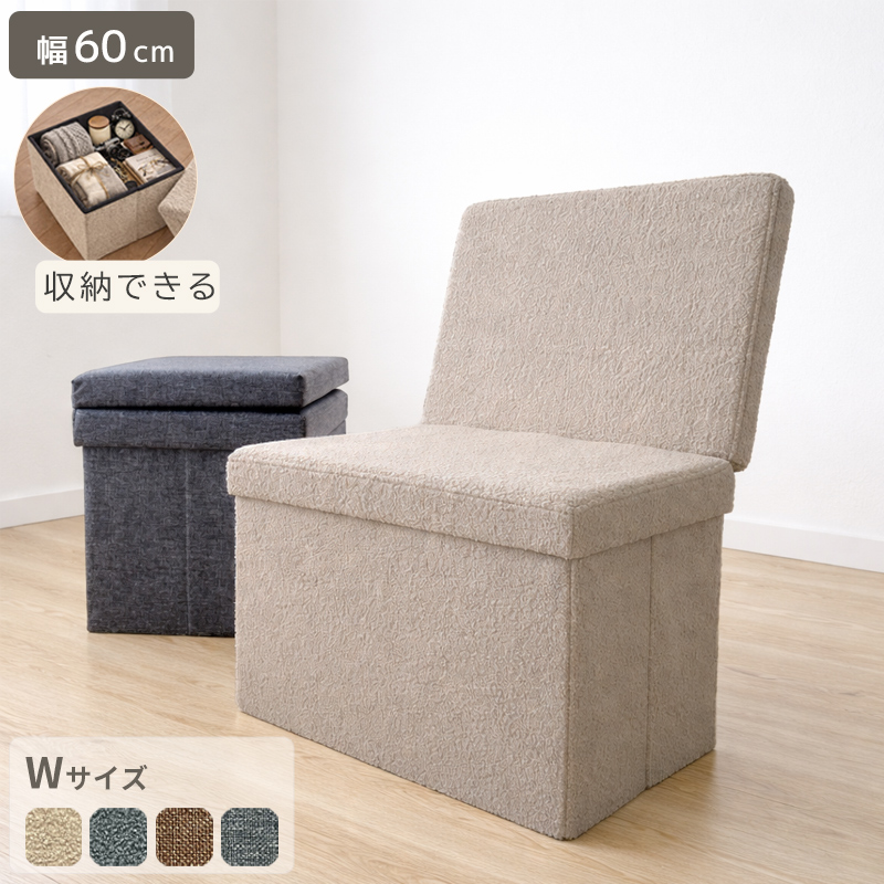 スツール 収納 背もたれ付き 椅子 座れる収納ボックス フタ付き 布 ブークレ 椅子 折りたたみ 座れる 長方形 Wサイズ フタ スツール おしゃれ 北欧 折り畳み