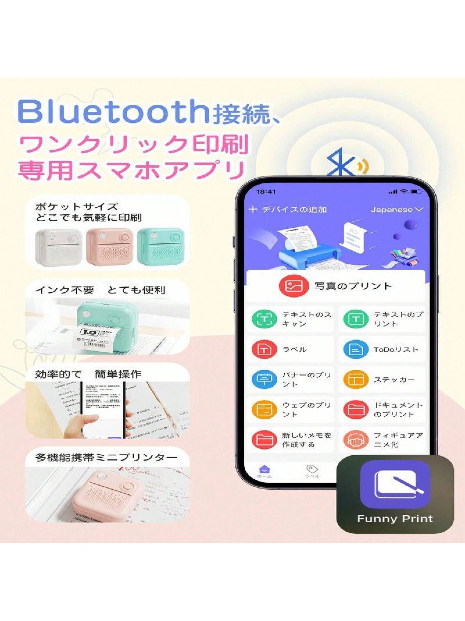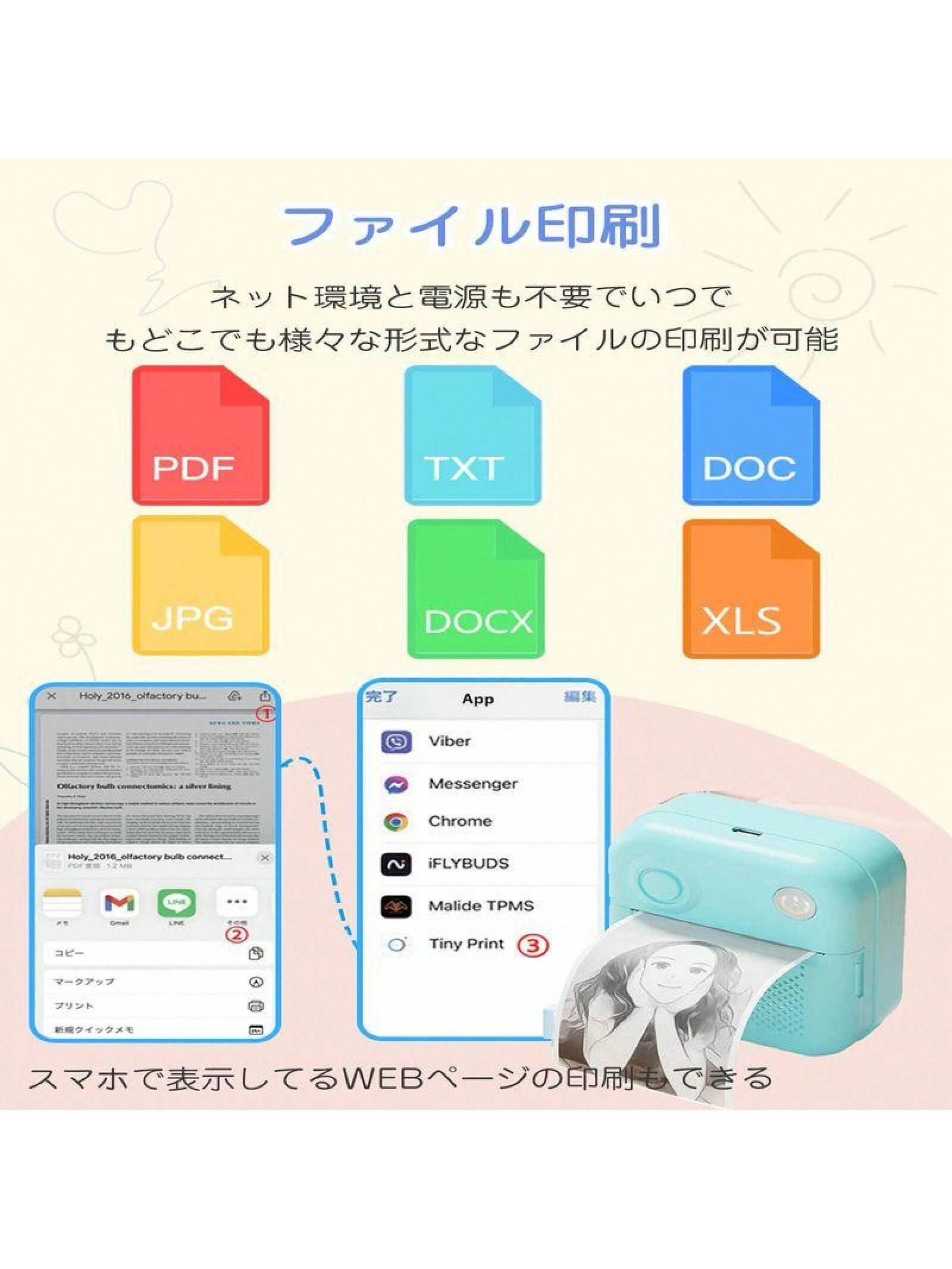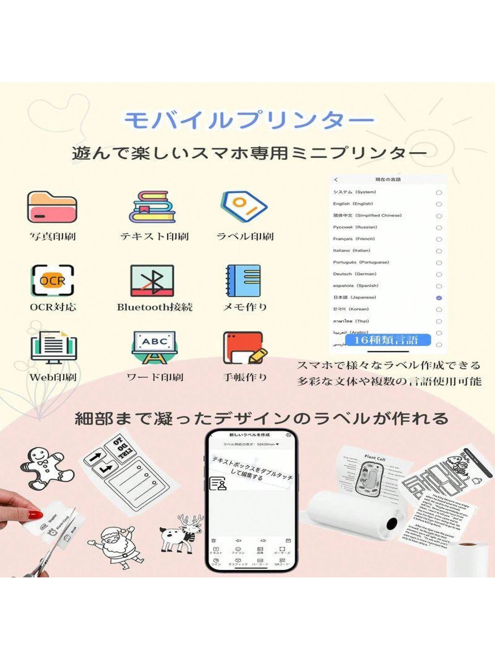 サーマルプリンター プリンター スマホ対応 ミニプリンター モバイルプリンター Bluetooth接続 ラベルプリンター 小型 軽量 感熱 ポータブルプリンター爆買