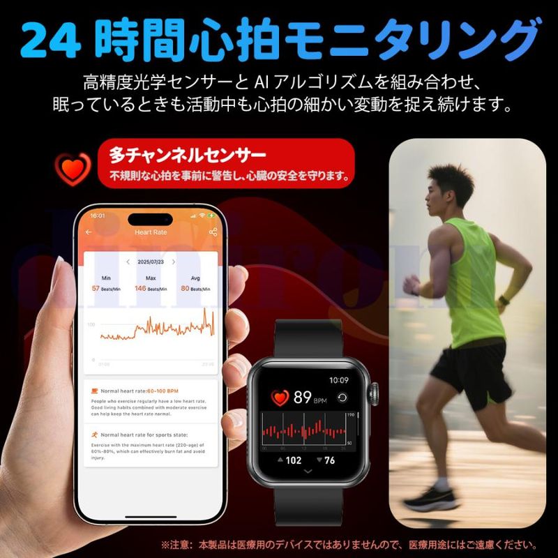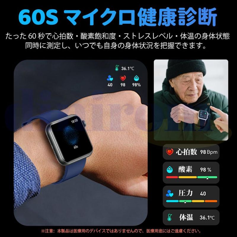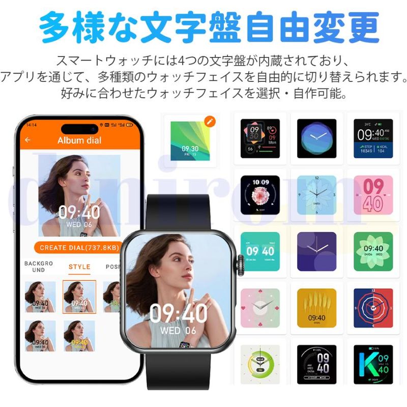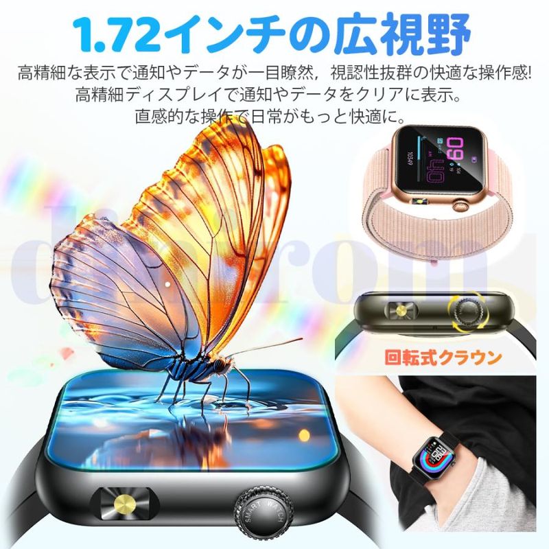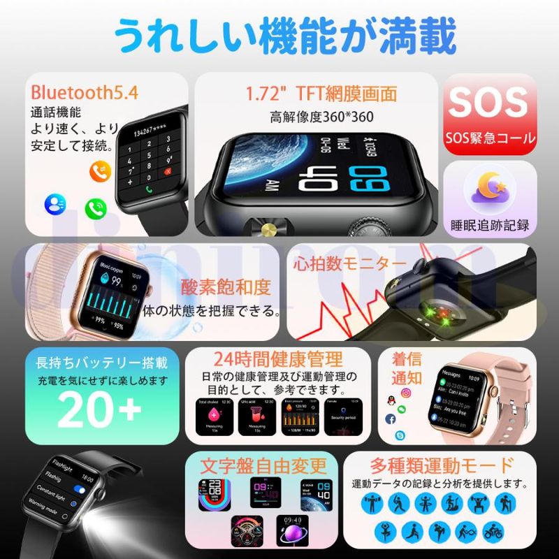 2025最新登場のSmart Watchは1.72インチ大画面タッチパネルを採用し、画質がより鮮明にHD大画面で、通知や文字を一目瞭然!または、画面の文字盤をお好みでカスタマイズすることができ、好きな写真をスマートウォッチのデスクトップに変換可能です。更にアプリ内は50種類以上の文字盤を自由にダウンロード可能です。個性豊かでスタイリッシュなスマートウォッチを、いつでも手にすることができます。日頃仕事を頑張っている自分へのご褒美、クリスマス、新年、誕生日、記念日、母の日、敬老の日などに一番適用するプレゼント!