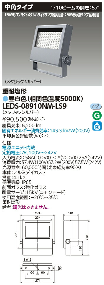 [法人限定] LEDS-08910NM-LS9 東芝 LED 投光器 重耐塩形 昼白色 [ LEDS08910NMLS9 ]
