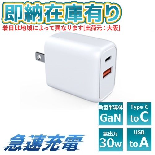 ○[即納在庫有り] HD-AC2P30WH ハイディスク HI-DISC(Gan)窒化ガリウム USBチャージャー (30W)A+C