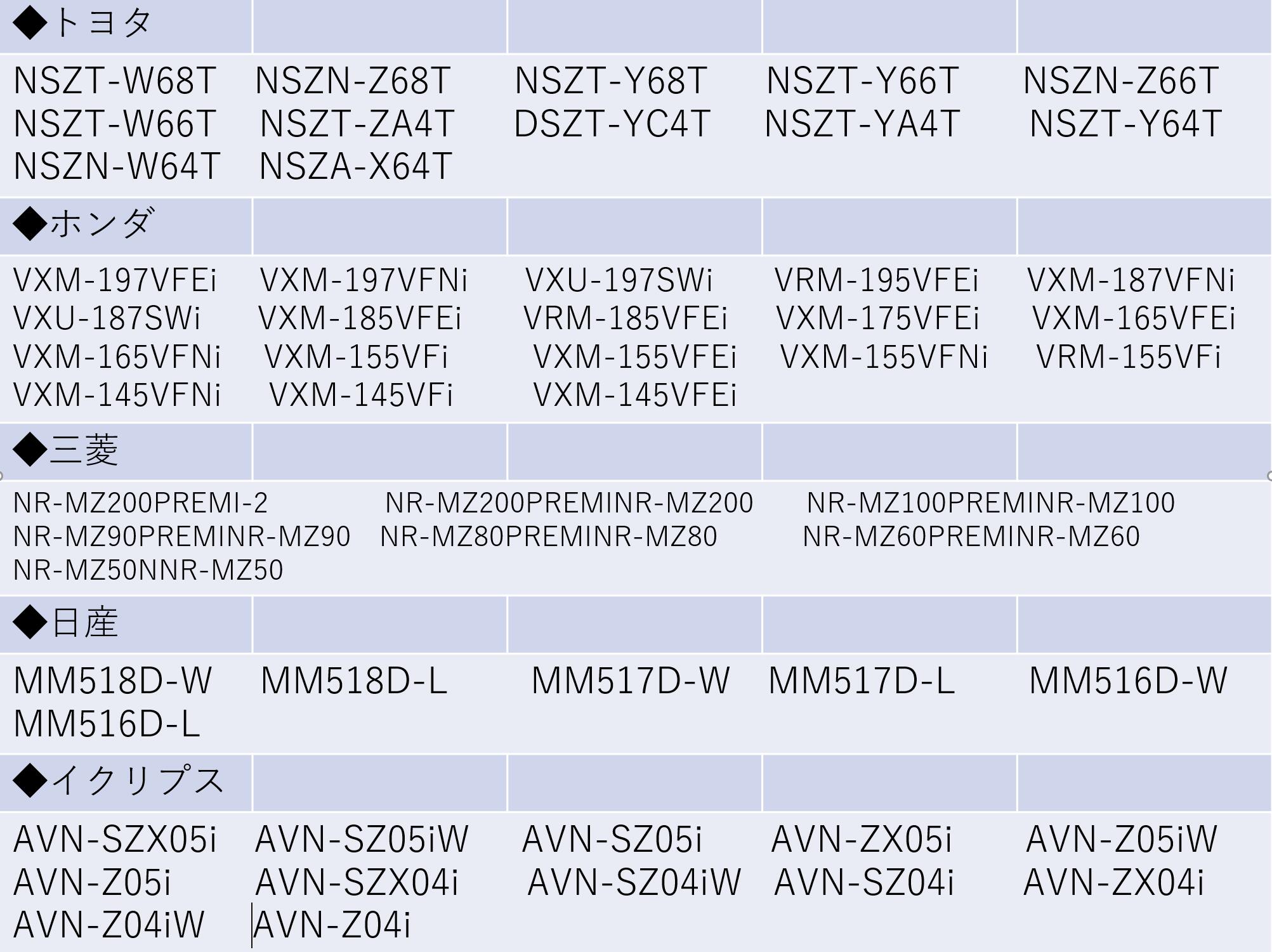 ■対応ナビ型番(代表例)