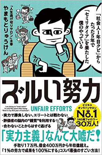 【概要】手取り17万円、社会人11カ月でクビ、借金400万円……。 「社会の底辺」から、たった数年で、 ビジネスオンラインサロンNo1、SNS総フォロワー30万人、年収億超えに。 「生涯、落ちこぼれ」だった著者が見つけた コスパ最強の「努力の裏ルール」とは何か 実力を磨くよりも、はるかに人生を好転させる 「社会の真相」が暴かれる ●本書の内容例 「なんであんな人が評価されるんだ」には理由がある 「誰も卑怯と気づかない卑怯なやり方」が最強の勝ちパターン 一部のズルい人だけが知っている「4つの努力の裏ルール」とは 行動より「努力しないための戦略」に時間をかける 「逃げる」ことは、コスパ最強の努力 世の中は「加点方式」ではなく、「減点方式」でできている なんでも悪く解釈される人と良く解釈される人の違い 仕事で使えるチート技:人の”不快ポイント”を知る 評価者の脳内を操るダークサイドスキル 実力より100倍大事な「視覚をハックする力」