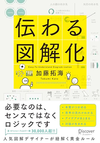 必要なのは、センスではなくロジック X(旧Twitter)で話題の人気図解デザイナーが紐解く ・本質がつかめる ・思考の流れがわかる ・アイデアがまとまる ・対話が生まれる 図解の「黄金ルール」 わかりやすくするために作ったつもりの図解が、 相手の理解を妨げていたり、 大切な情報が抜けてしまっていたりするかもしれません。 それ以前に、 あなたが作った図解が、 あなた自身を混乱させているかもしれません。 ・頑張って作った図解がぱっとしない ・資料を見た相手の反応が薄い ・図解が相手の理解を深めているように思えない ・図解がただの飾りになっている ・図解を作るときに必要な情報が抜け落ちてしまう ・図解したことでかえって誤解や混乱を招いてしまった ・伝わる図解がどういうものか、実はよくわからない 「図解はセンスが問われるもの」 「私にはセンスがないから、無理」 と思った方もいるでしょう。 しかし、図解の良し悪しで大切なのは、 センスではありません。 あくまでも、ロジックです。 つまり、基本とルールがわかれば、 誰でも「伝わる図解」を作ることができるのです。 この本は、 伝わる図