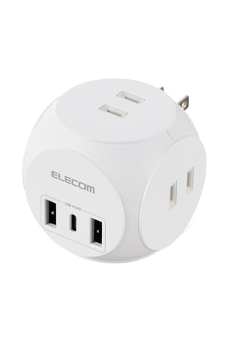 エレコム 電源タップ 球体型 USB付き AC×3 Type-C×1 USB-A×2 20W USB PD対応 スイングプラグ ほこり防止シャッ