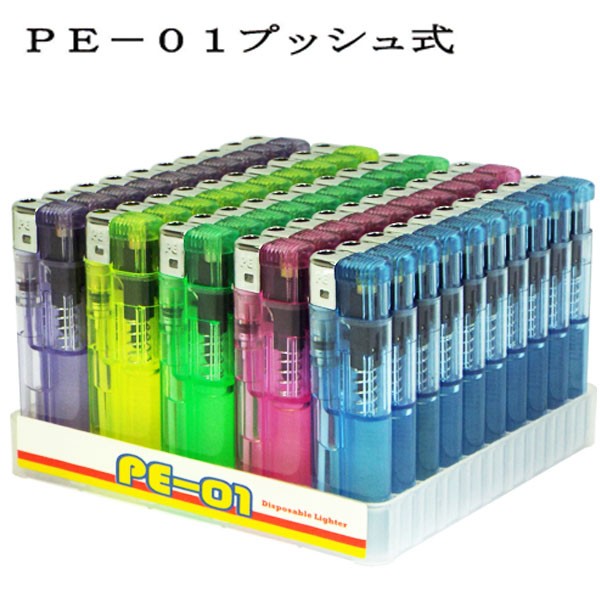 | 商品説明 | 使いきり電子着火ライター PSC対応のプッシュ式電子ライター CR機能付き(子供が簡単に着火できないように チャイルドレジスタンス対応商品) ボディ色:パープル・イエロー・グリーン ピンク・ブルー各10個合計50個 |