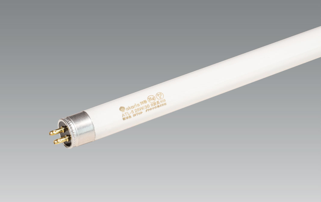 極細のTL-5蛍光ランプは直径が16mmと従来型(直径32mm)の半分の細さです。