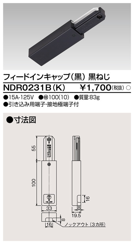ダクトレール NDR0231B(K) (10個入) 黒 TOSHIBA/東芝 ライティングレール フィードインキャップ