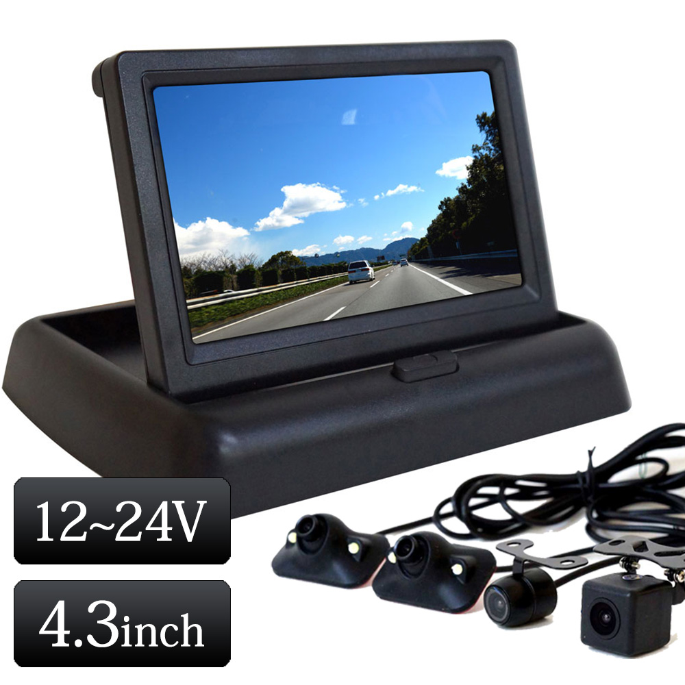 バックカメラ モニターセット シガー電源 カメラ4台セット 360度 4.3インチ 12V 24V 対応 高画質 あすつく 送料無 D431BC840MB