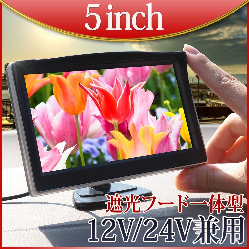 オンダッシュモニター 5インチ 12V 24V 遮光フード カーモニター コンパクト 1年保証 あすつく 送料無 D510B