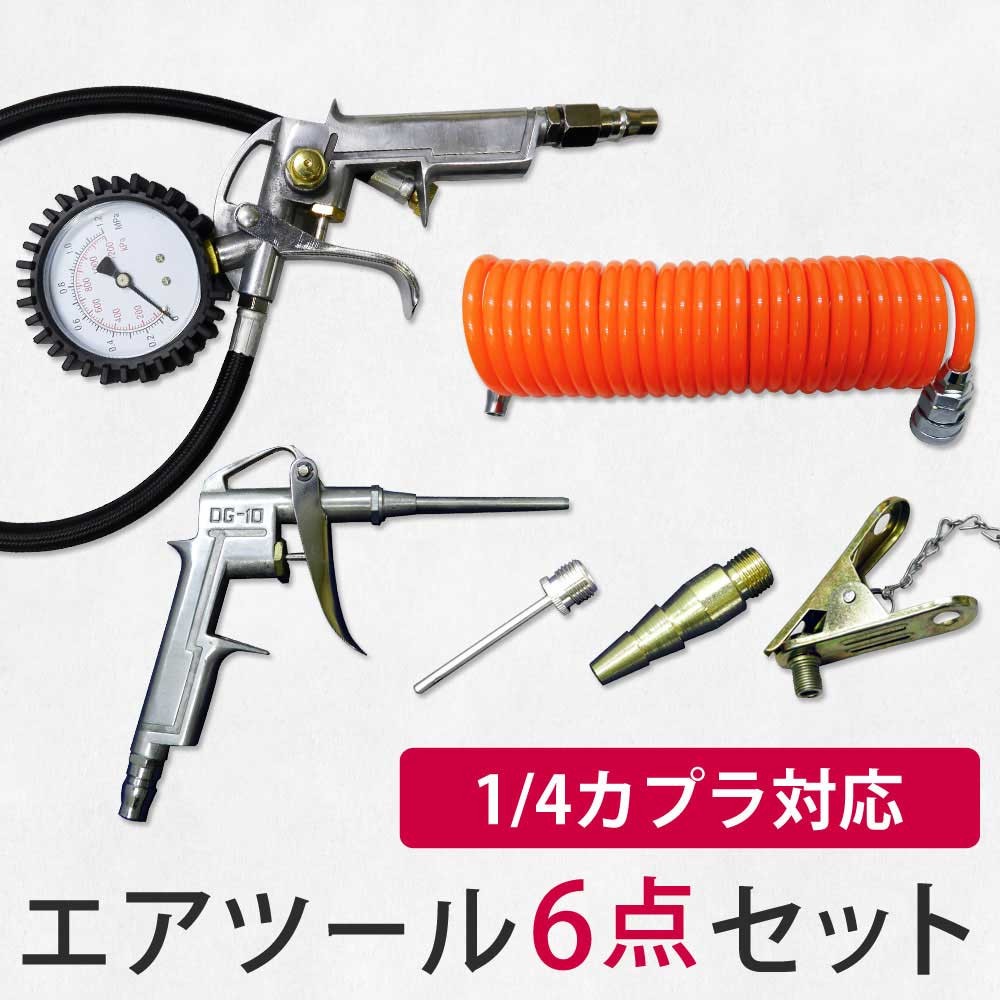 エアーコンプレッサー 用 エアツール 6点セット 空気圧測定 エアープレッシャー ゲージ タイヤゲージ 自転車タイヤ用ノズル 送料無 DP400