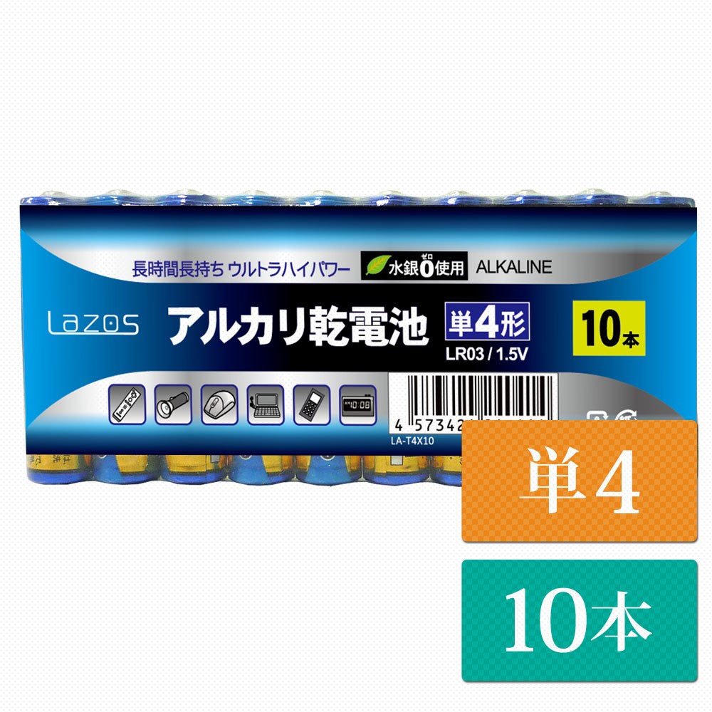 単4 アルカリ乾電池 Lazos 10本 単四 長時間 長持ち メール便送料無 la-t4