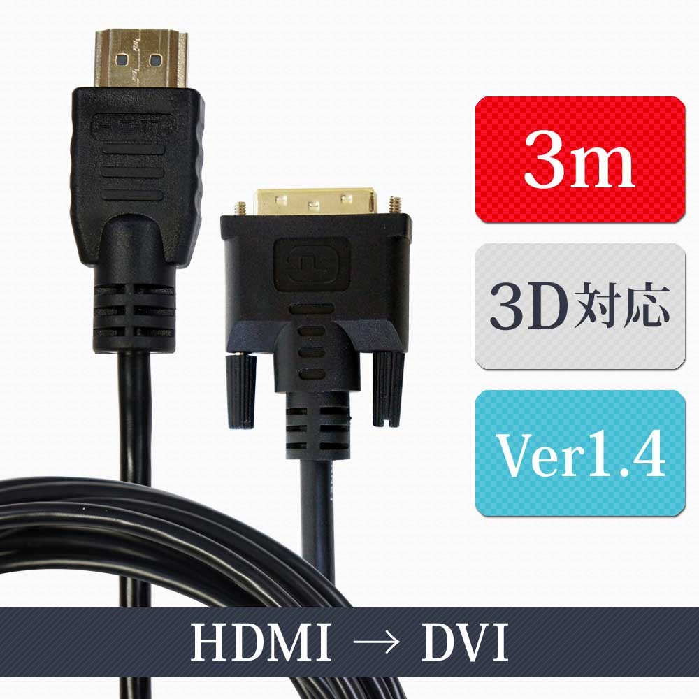 HDMIケーブル HDMI-DVI 変換ケーブル 3m ver1.4 ハイビジョン ハイスピード イーサネット 3D対応 送料無 メール便 2 XCA247