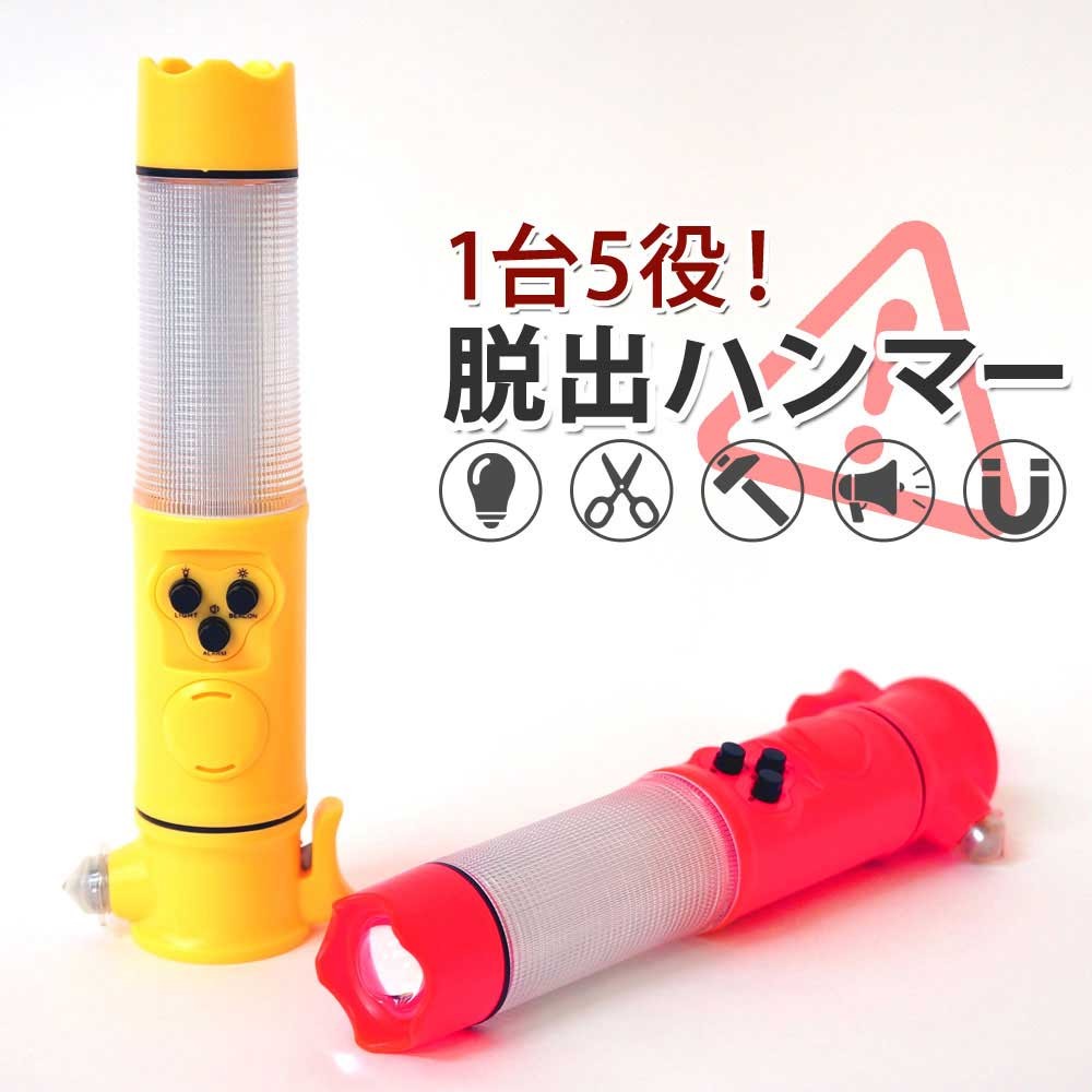 レスキューハンマー 脱出ハンマー ガラスハンマー ライト 1台5役 シートベルトカッター LED懐中電灯 非常灯 サイレン 緊急脱出用 送料無 XL912
