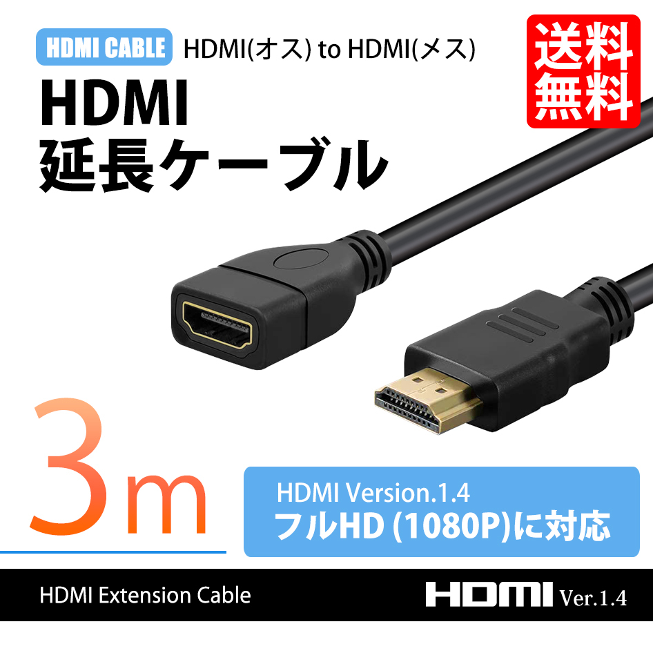HDMI延長ケーブル 3m hdmi 延長 ケーブル オスメス version 1.4 FullHD 3D フルハイビジョン 1080P 送料無料