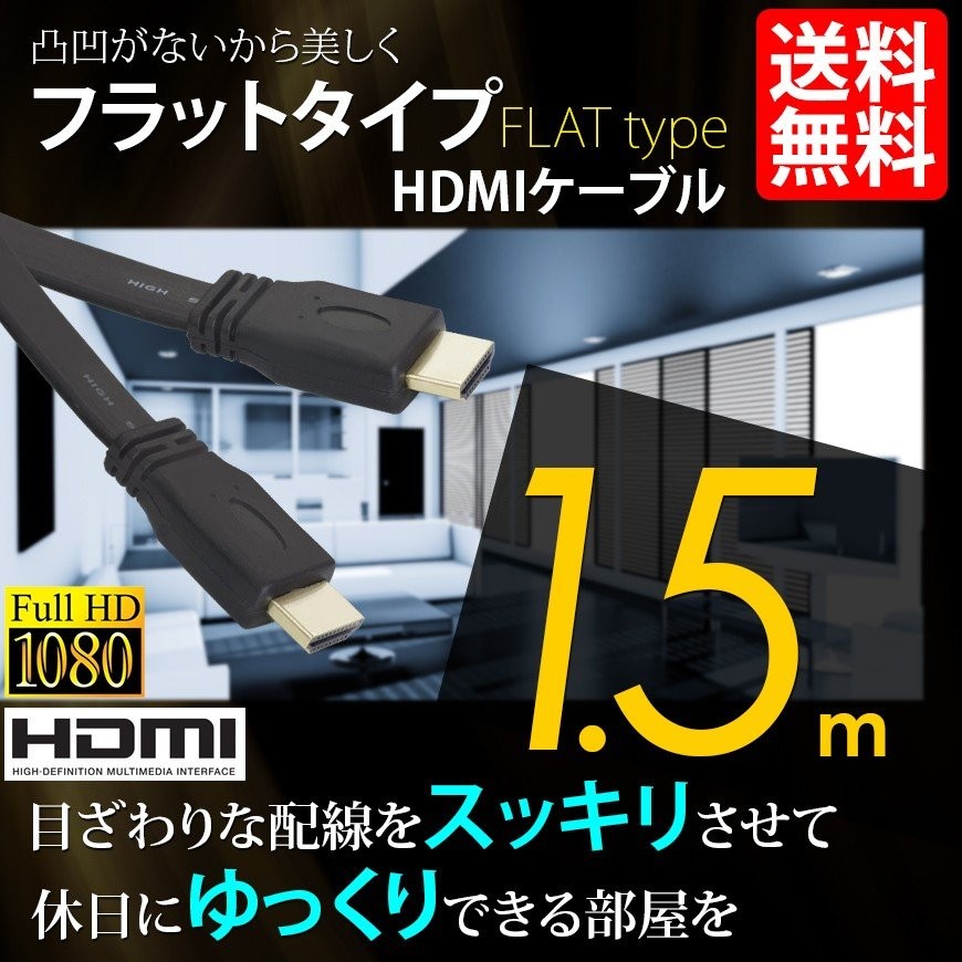 HDMIケーブル 薄型 スリム フラット ケーブル 1.5m 1.5メートル 4K 3D/フルハイビジョン