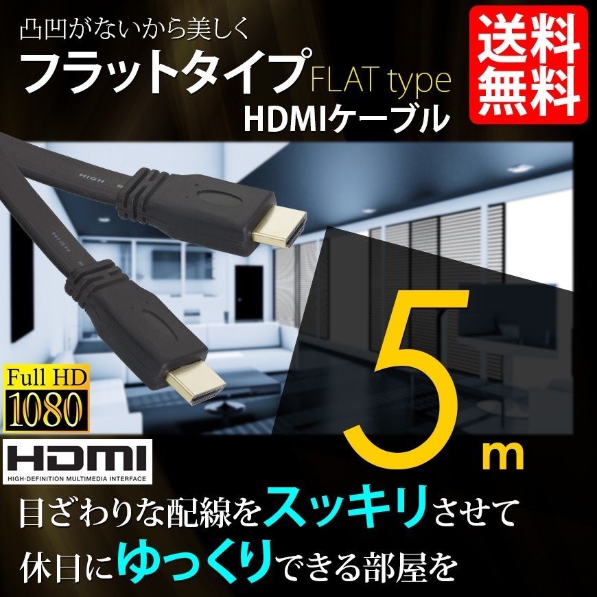 HDMIケーブル 薄型 スリム フラット ケーブル 5m 5メートル 4K 3D/フルハイビジョン