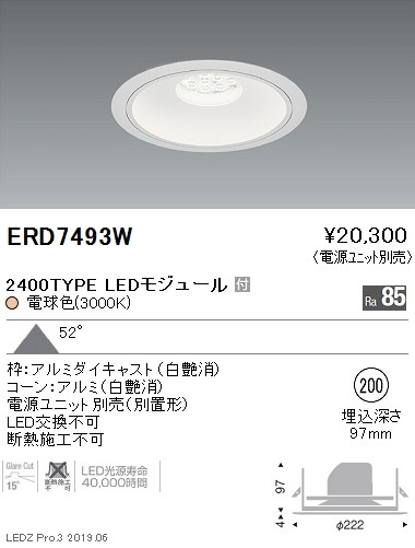 遠藤照明 LEDダウンライト ERD7493W ※電源ユニット別売