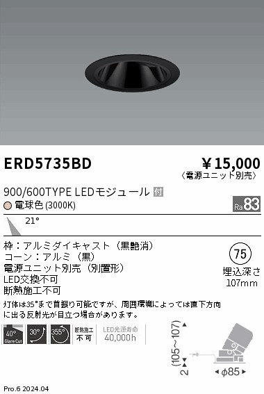 遠藤照明 ERD5735BD グレアレスユニバ_900/600タイプ_3000K
