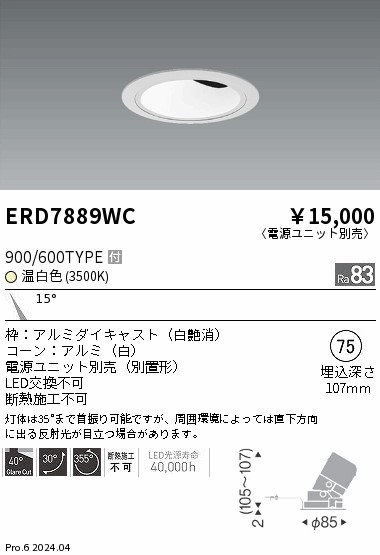 遠藤照明 ERD7889WC グレアレスユニバ_900/600タイプ_3500K