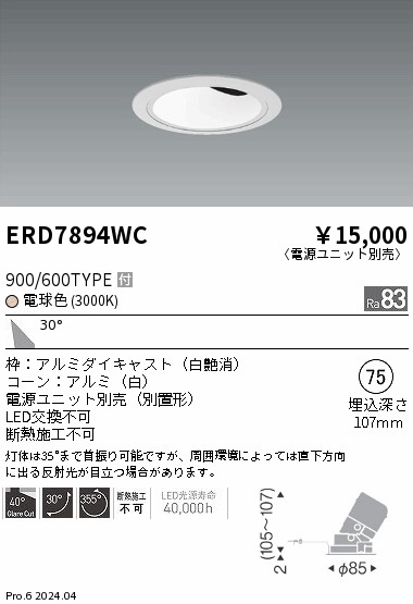 遠藤照明 ERD7894WC グレアレスユニバ_900/600タイプ_3000K